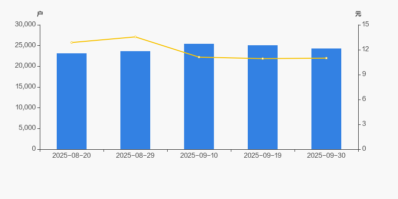 2025年8月20日至今,公司股东户数有所增长,区间涨幅为5.03%。2025年8月20日至2025年9月30日区间股价下降14.61%。