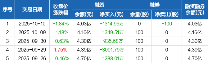 美联新材:连续5日融资净偿还累计7979.94万元(10-10)