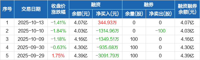 美联新材:融资净买入344.93万元,融资余额4.07亿元(10-13)