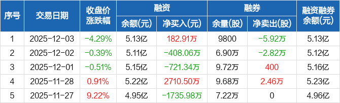 天铁科技:融资净买入182.91万元,融资余额5.13亿元(12-03)