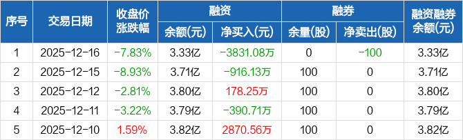 江龙船艇:融资净偿还3831.08万元,融资余额3.33亿元(12-16)