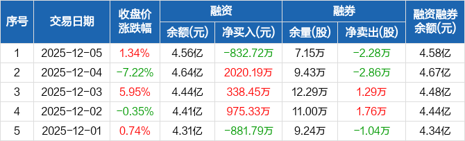 新雷能:融资净偿还832.72万元,融资余额4.56亿元(12-05)