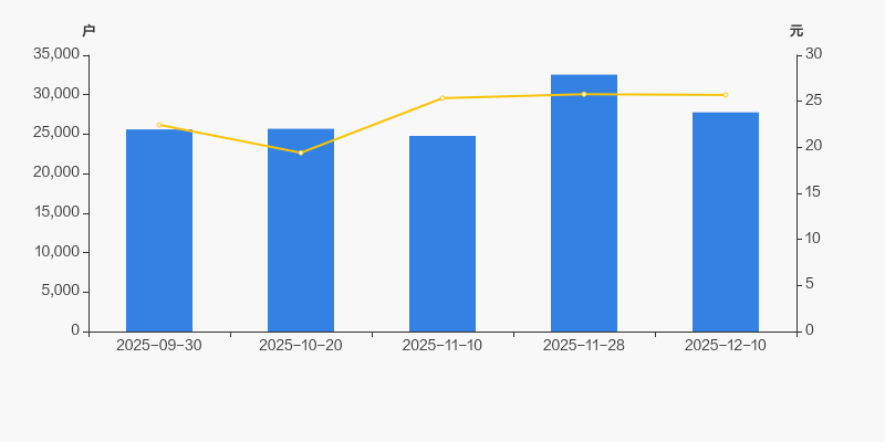 2025年9月30日至今,公司股东户数有所增长,区间涨幅为8.46%。2025年9月30日至2025年12月10日区间股价上涨14.48%。