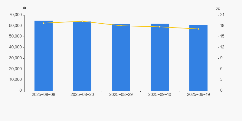截至2025年9月19日,公司最新总股本为8.96亿股,其中流通股本为6.68亿股。户均持有流通股数量由上期的1.08万股上升至1.1万股,户均流通市值18.79万元。