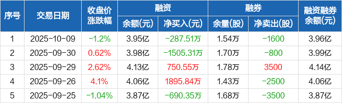 利安隆:融资净偿还287.51万元,融资余额3.95亿元(10-09)