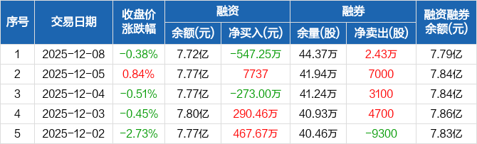 康泰生物:融资净偿还547.25万元,融资余额7.72亿元(12-08)