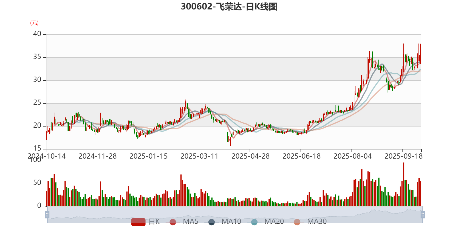中证智能财讯飞荣达(300602)10月13日晚间披露业绩预告,预计2025年前三季度实现营业收入46.17亿元,同比增长29.95%;归母净利润2.75亿元至3亿元,同比增长110.8%-129.96%;扣非净利润预计2.38亿元至2.63亿元,同比增长101.76%-122.95%。以10月13日收盘价计算,飞荣达目前市盈率(TTM)约为55.66倍-59.52倍,市净率(LF)约5.6倍,市销率(TTM)约3.44倍。