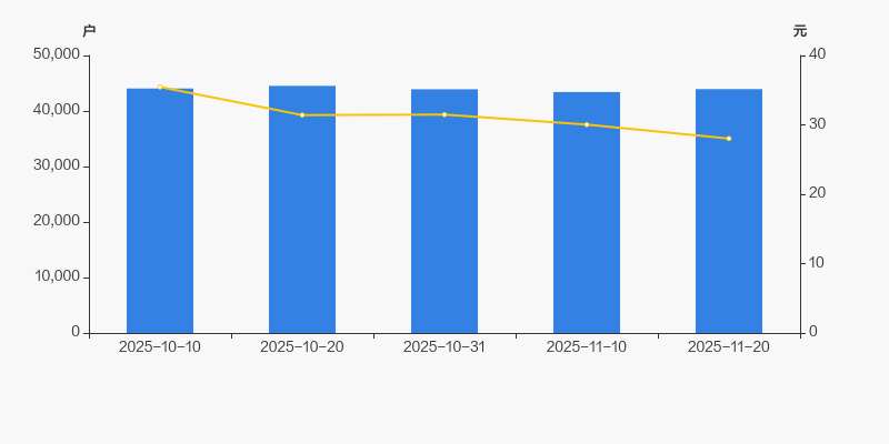 2025年10月10日至今,公司股东户数有所下降,区间跌幅为0.25%。2025年10月10日至2025年11月20日区间股价下降20.95%。