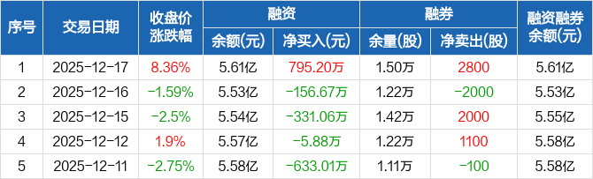 飞荣达:融资净买入795.2万元,融资余额5.61亿元(12-17)
