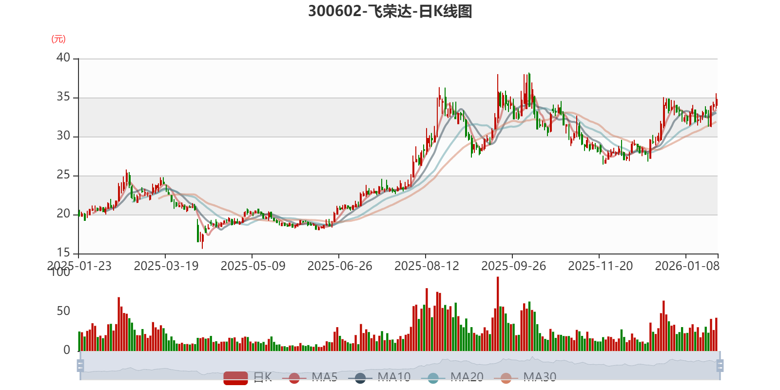 中证智能财讯飞荣达(300602)1月23日晚间披露2025年度业绩预告,预计2025年归母净利润3.6亿元至4.2亿元,同比增长57.23%-83.43%;扣非净利润预计3.13亿元至3.73亿元,同比增长59.14%-89.65%。以1月23日收盘价计算,飞荣达目前市盈率(TTM)约为48.14倍-56.17倍,市净率(LF)约5.09倍,市销率(TTM)约3.25倍。