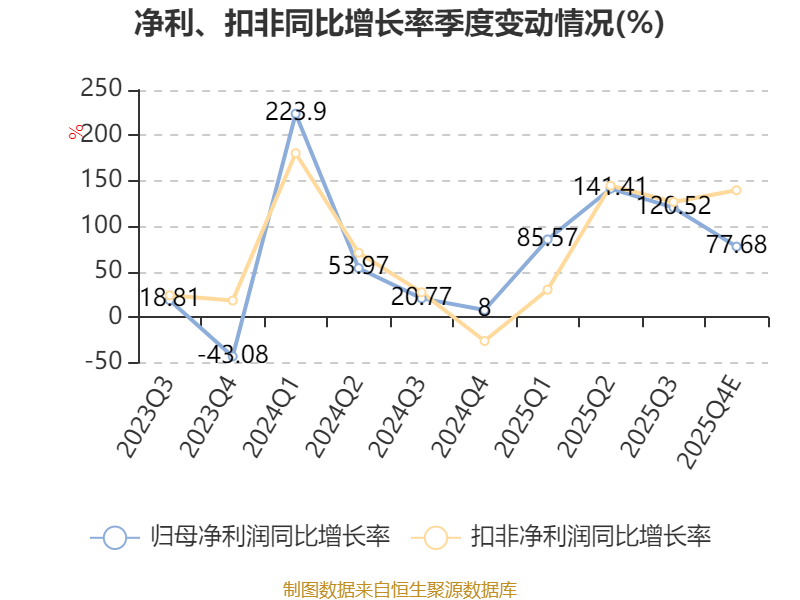 公司预计2025年度实现营业收入约65亿元,同比增长约25%,整体保持稳健增长态势,业绩变动的主要原因如下:随着消费电子市场需求回暖与技术升级,AI的快速发展和广泛应用,对算力基础设施提出更高的要求,对散热及电磁屏蔽解决方案提出更高的需求,公司在产品研发和工艺研发上进行迭代,不断优化产品结构,公司消费电子领域的市场份额及盈利能力稳步上升。公司一直与客户保持着紧密的合作,积极支持并参与客户新产品新项目研发,多款新产品已顺利通过客户认证,并将逐步应用于客户迭代升级的新产品中。同时,公司积极关注具身智能领域的发展,聚焦人形机器人、智能穿戴等应用场景进行布局,围绕其AI芯片、关节电机、传感器等部件的散热与结构支撑需求,公司可以提供导热材料、风扇、液冷散热系统、灵巧手、关节模组及轻量化结构件等产品,适配高功率密度、小型化及动态交互场景,可支撑智能终端产品稳定运行。