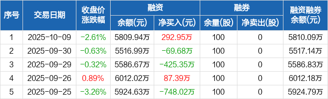 百川畅银:融资净买入292.95万元,融资余额5809.94万元(10-09)