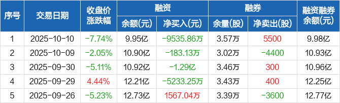 光库科技:连续4日融资净偿还累计2.79亿元(10-10)