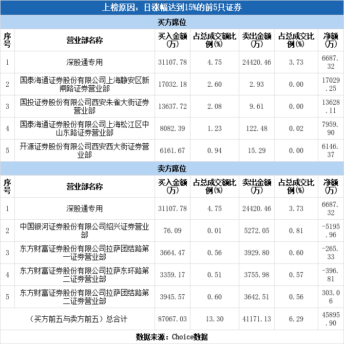 深股通现身龙虎榜,光库科技涨停(11-25)