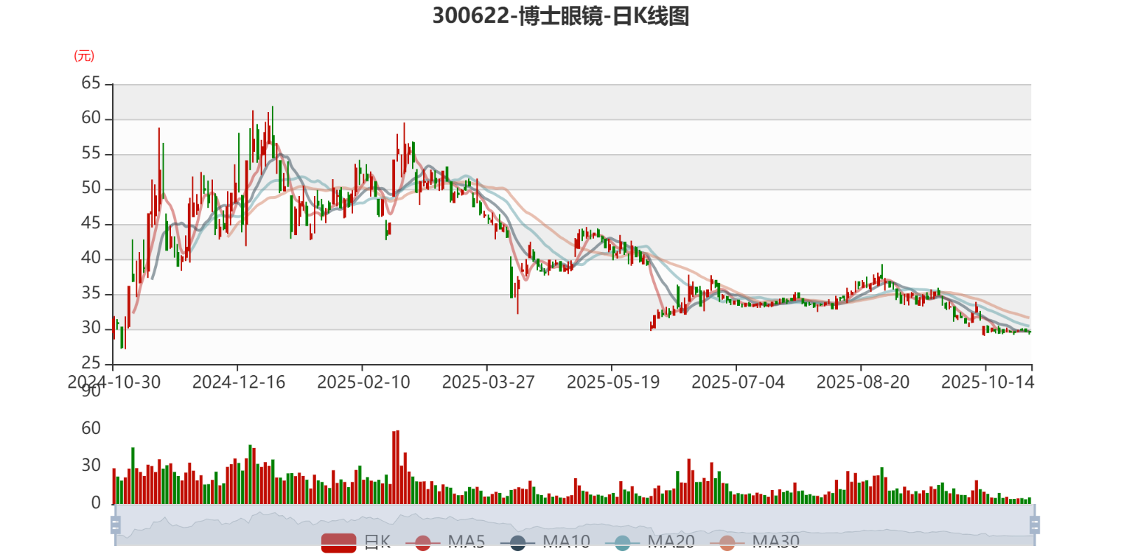以10月29日收盘价计算,博士眼镜目前市盈率(TTM)约为62.44倍,市净率(LF)约7.95倍,市销率(TTM)约4.93倍。