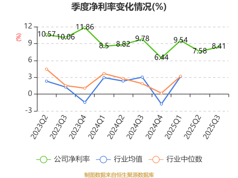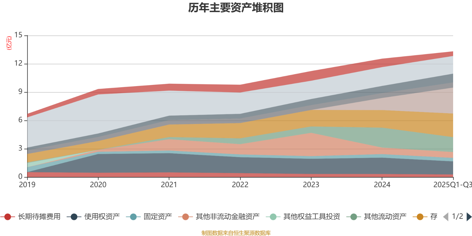 资产重大变化方面,截至2025年三季度末,公司交易性金融资产合计较上年末增加114.34%,占公司总资产比重上升10.42个百分点;其他流动资产较上年末减少25.22%,占公司总资产比重下降4.96个百分点;存货较上年末增加34.22%,占公司总资产比重上升3.93个百分点;使用权资产较上年末减少19.75%,占公司总资产比重下降3.37个百分点。