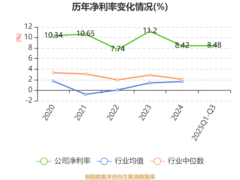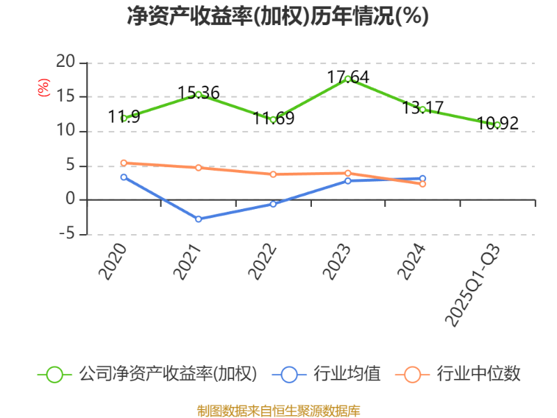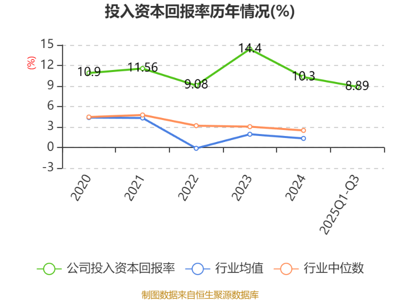 盈利能力方面, 2025年前三季度公司加权平均净资产收益率为10.92%,同比上升0.46个百分点。公司2025年前三季度投入资本回报率为8.89%,较上年同期上升0.32个百分点。