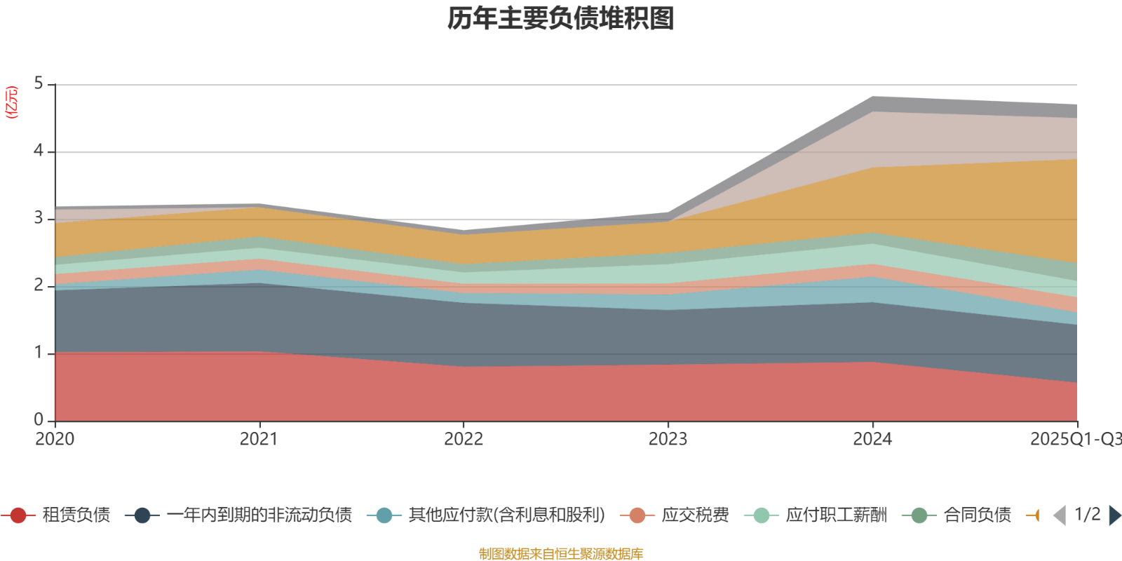 负债重大变化方面,截至2025年三季度末,公司应付票据及应付账款较上年末增加59.58%,占公司总资产比重上升3.88个百分点;租赁负债较上年末减少35%,占公司总资产比重下降2.7个百分点;短期借款较上年末减少26.72%,占公司总资产比重下降2.05个百分点;其他应付款(含利息和股利)较上年末减少51.65%,占公司总资产比重下降1.65个百分点。