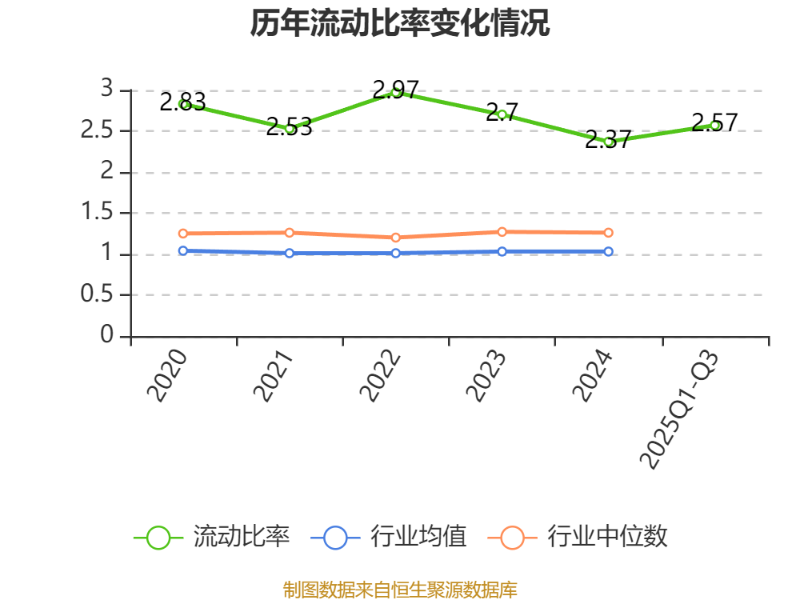 2025年前三季度,公司流动比率为2.57,速动比率为1.94。