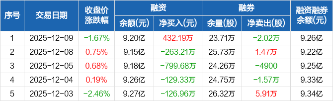捷捷微电:融资净买入432.19万元,融资余额9.2亿元(12-09)
