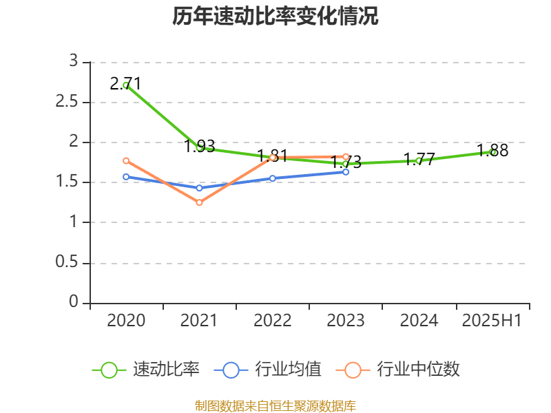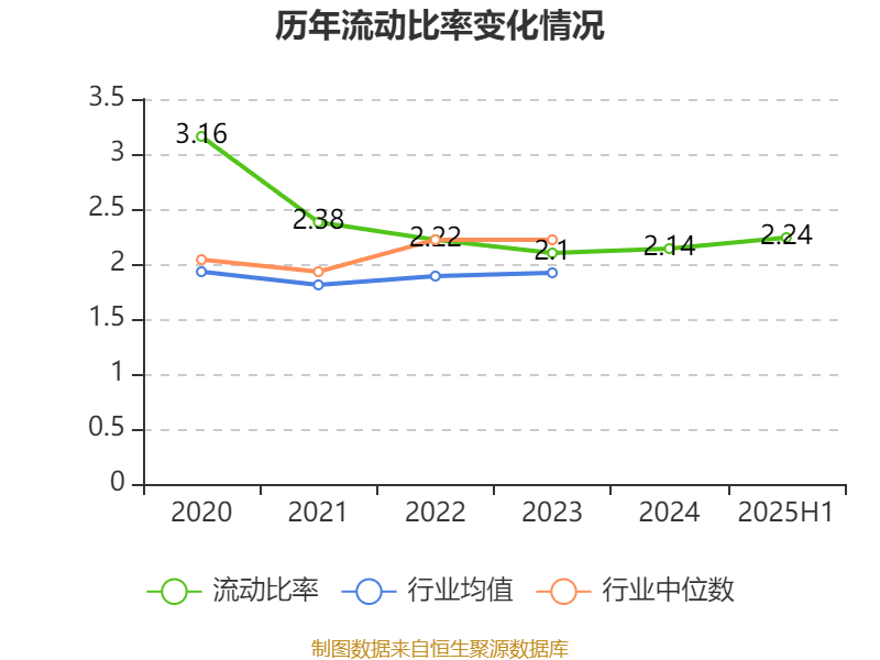 2025年上半年,公司流动比率为2.24,速动比率为1.88。