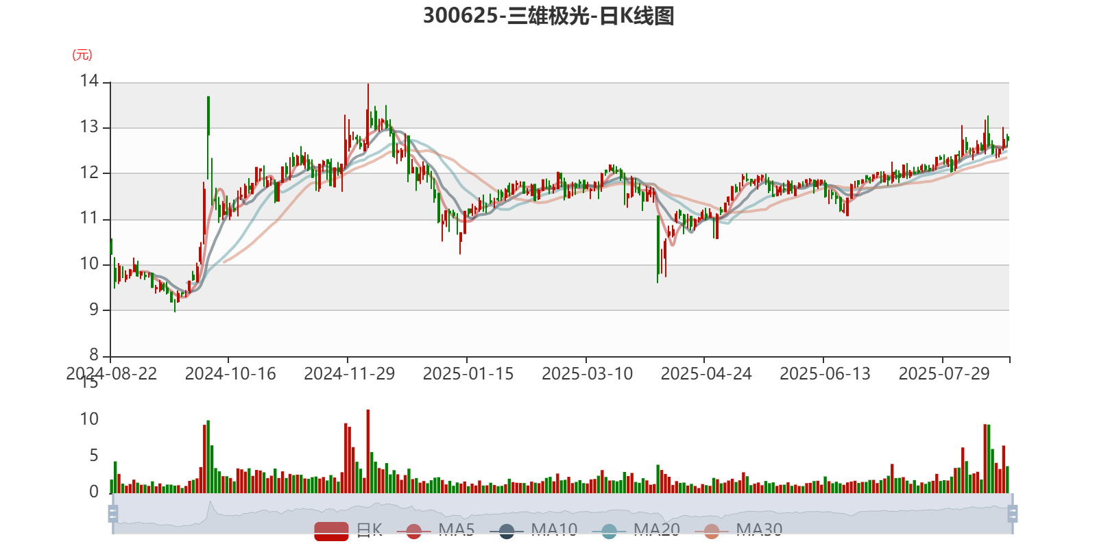 以8月21日收盘价计算,三雄极光目前市盈率(TTM)约为-202.84倍,市净率(LF)约1.8倍,市销率(TTM)约1.86倍。