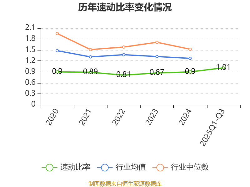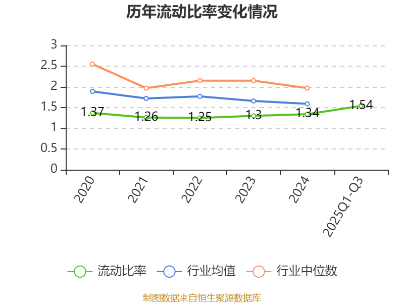 2025年前三季度,公司流动比率为1.54,速动比率为1.01。