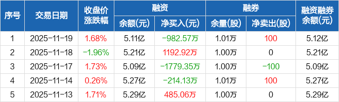 新劲刚:融资净偿还982.57万元,融资余额5.11亿元(11-19)