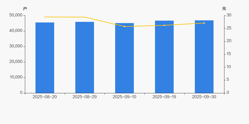 截至2025年9月30日,公司最新总股本为4.51亿股,其中流通股本为4.35亿股。户均持有流通股数量为9272股,较上期略有下降;户均流通市值25.13万元。