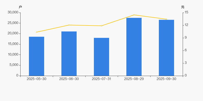 截至2025年9月30日,公司最新流通股本为2.35亿股。户均持有流通股数量由上期的8522股上升至8822股,户均流通市值11.86万元。