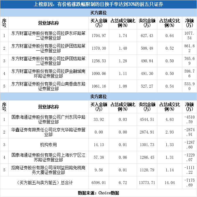 深交所2025年12月11日交易公开信息显示,德艺文创因属于有价格涨跌幅限制的日换手率达到30%的前五只证券而登上龙虎榜。德艺文创当日报收8.48元,涨跌幅为-13.38%,换手率51.60%,振幅9.19%,成交额9.81亿元。