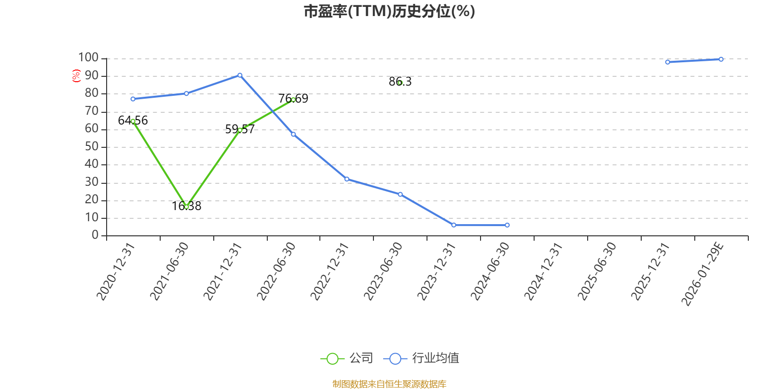 以本次披露业绩预告均值计算,公司近年市盈率(TTM)图如下所示: