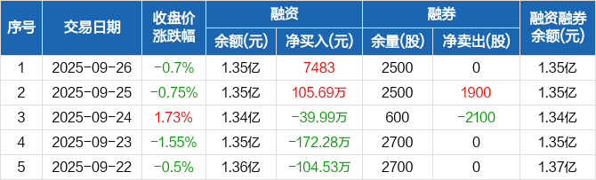 正海生物:融资净买入7483元,融资余额1.35亿元(09-26)