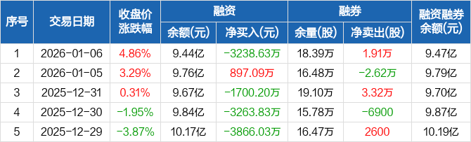 晶瑞电材:融资净偿还3238.63万元,融资余额9.44亿元(01-06)