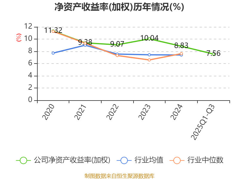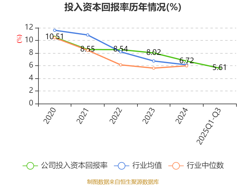 盈利能力方面, 2025年前三季度公司加权平均净资产收益率为7.56%,同比上升0.41个百分点。公司2025年前三季度投入资本回报率为5.61%,较上年同期上升0.41个百分点。