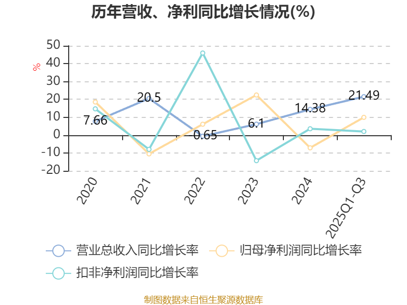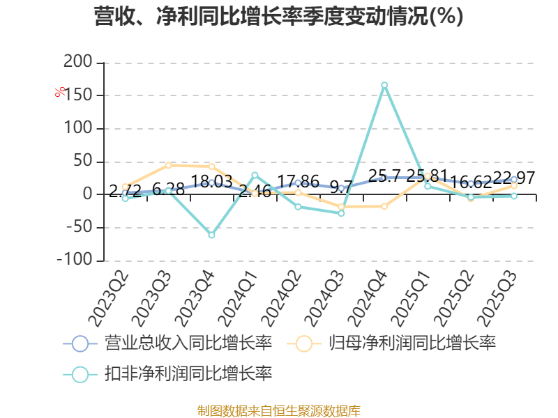 中证智能财讯江苏雷利(300660)10月30日披露2025年第三季度报告。前三季度公司实现营业总收入30.08亿元,同比增长21.49%;归母净利润2.65亿元,同比增长9.92%;扣非净利润2.41亿元,同比增长2.01%;经营活动产生的现金流量净额为2.34亿元,同比下降34.61%;报告期内,江苏雷利基本每股收益为0.5921元,加权平均净资产收益率为7.56%。