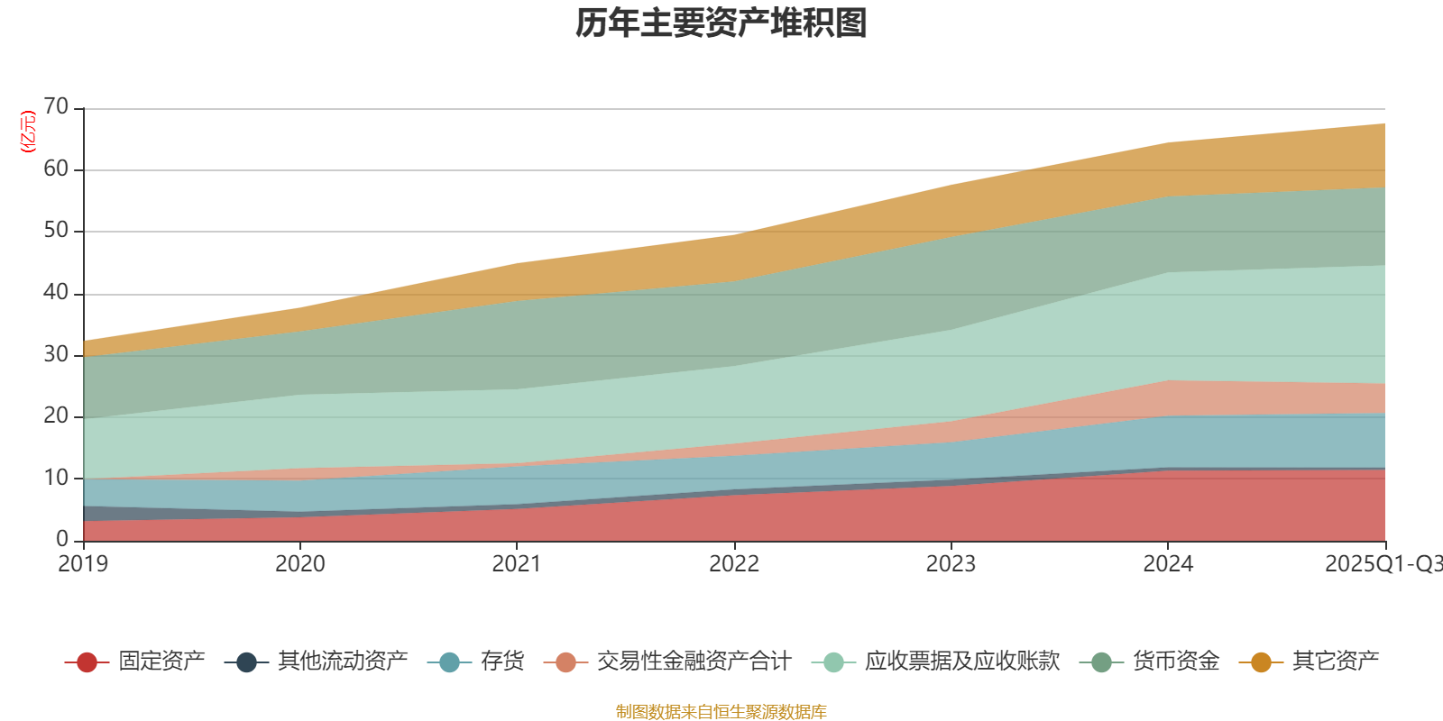 资产重大变化方面,截至2025年三季度末,公司交易性金融资产合计较上年末减少16.32%,占公司总资产比重下降1.79个百分点;应收票据及应收账款较上年末增加9.42%,占公司总资产比重上升1.2个百分点;其他非流动金融资产较上年末增加51.68%,占公司总资产比重上升1.19个百分点;在建工程合计较上年末增加45.77%,占公司总资产比重上升0.75个百分点。