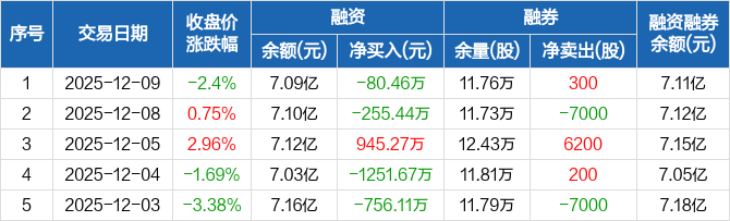 科蓝软件:融资净偿还80.46万元,融资余额7.09亿元(12-09)