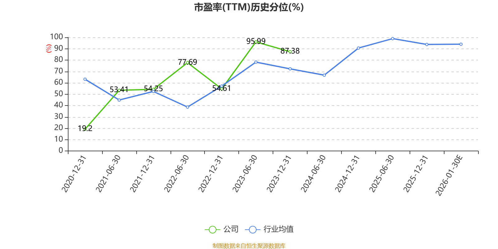 以本次披露业绩预告均值计算,公司近年市盈率(TTM)图如下所示: