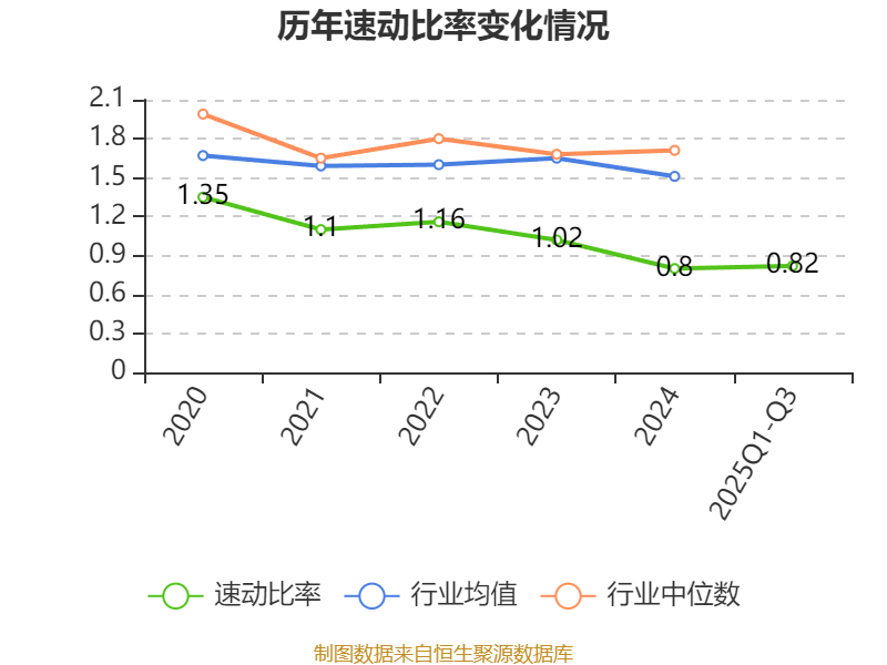 2025年前三季度,公司流动比率为1.01,速动比率为0.82。