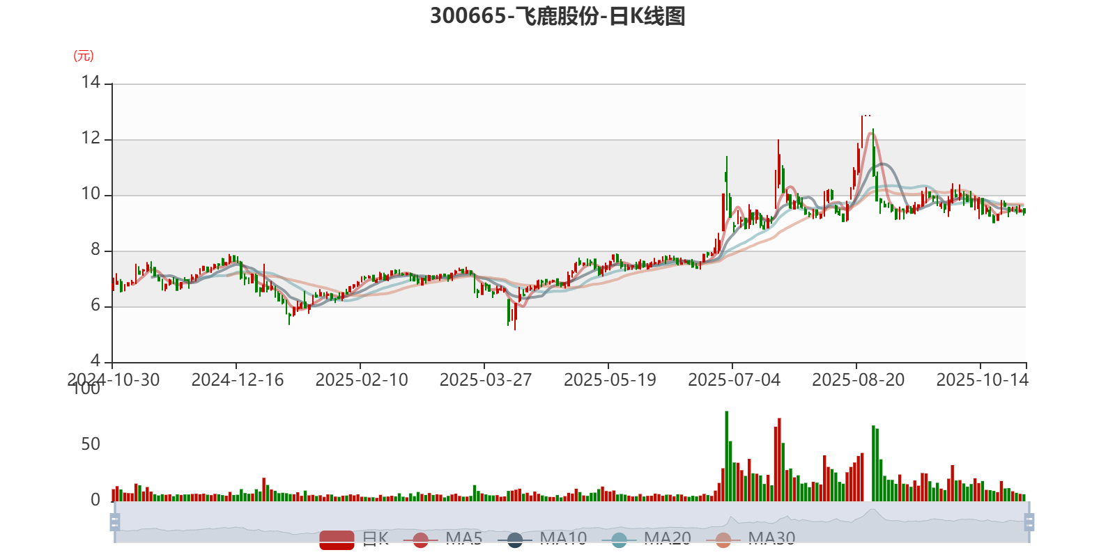 以10月29日收盘价计算,飞鹿股份目前市盈率(TTM)约为-14.69倍,市净率(LF)约3.71倍,市销率(TTM)约3.45倍。