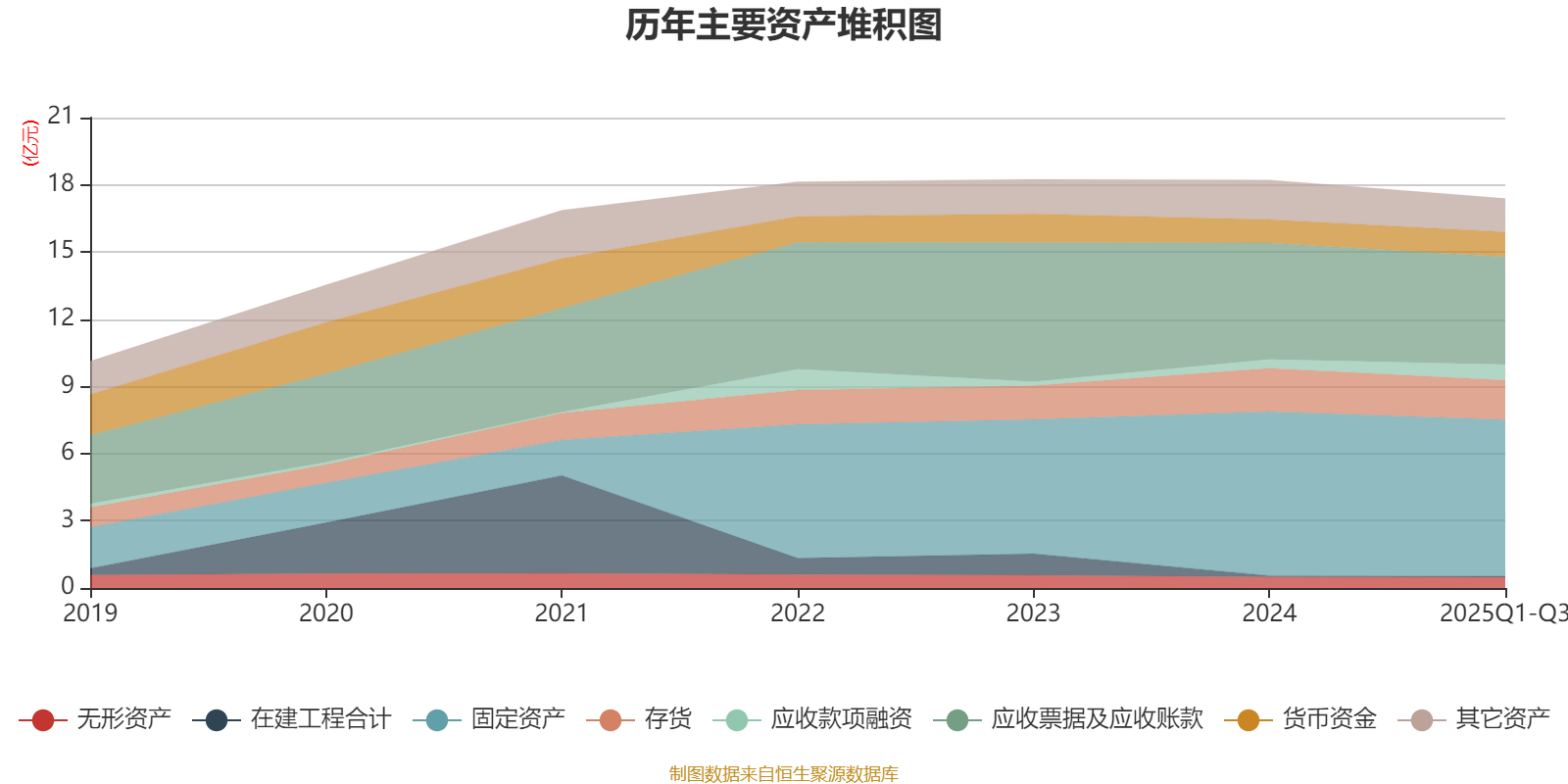 资产重大变化方面,截至2025年三季度末,公司应收款项融资较上年末增加77.15%,占公司总资产比重上升1.86个百分点;应收票据及应收账款较上年末减少7.22%,占公司总资产比重下降0.8个百分点;货币资金较上年末增加4.95%,占公司总资产比重上升0.57个百分点;其他流动资产较上年末减少28.45%,占公司总资产比重下降0.57个百分点。