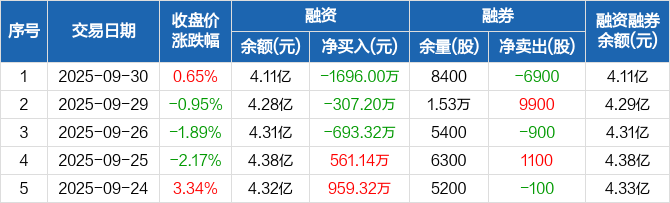 富满微:连续3日融资净偿还累计2696.51万元(09-30)
