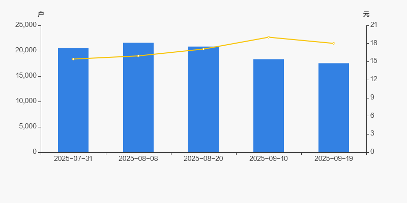 自2025年8月8日以来,公司股东户数连续3期下降,截至目前减幅为18.72%。2025年8月8日至2025年9月19日区间股价上涨12.98%。