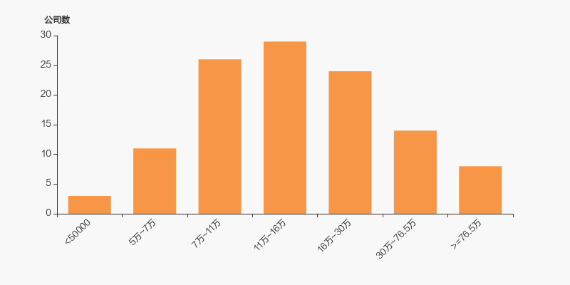 佩蒂股份股东户数低于行业平均水平。根据Choice数据,截至2025年9月19日农林牧渔行业上市公司平均股东户数为4.39万户。其中,公司股东户数处于3.5万~6.5万区间占比最高,为23.48%。