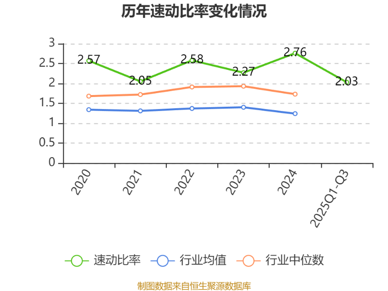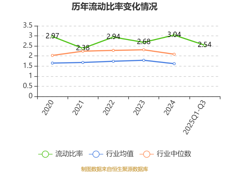 2025年前三季度,公司流动比率为2.54,速动比率为2.03。
