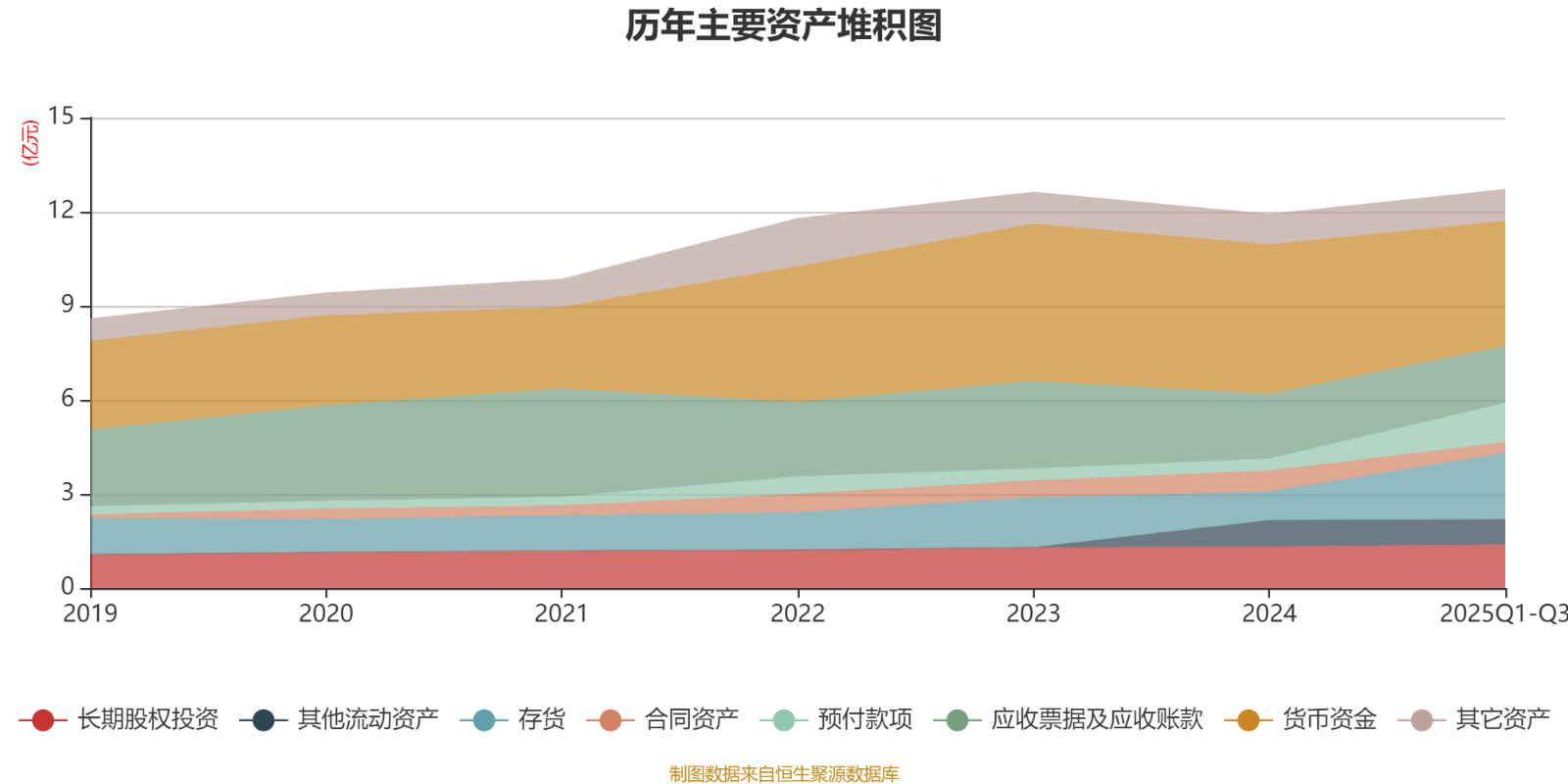资产重大变化方面,截至2025年三季度末,公司存货较上年末增加131.66%,占公司总资产比重上升9个百分点;货币资金较上年末减少16.29%,占公司总资产比重下降8.59个百分点;预付款项较上年末增加228.36%,占公司总资产比重上升6.64个百分点;应收票据及应收账款较上年末减少12.34%,占公司总资产比重下降3.09个百分点。