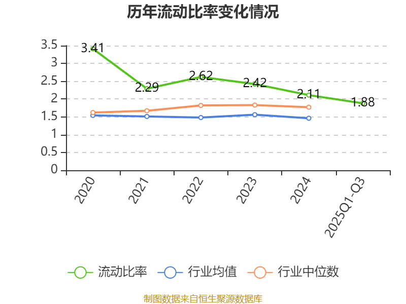 2025年前三季度,公司流动比率为1.88,速动比率为1.5。