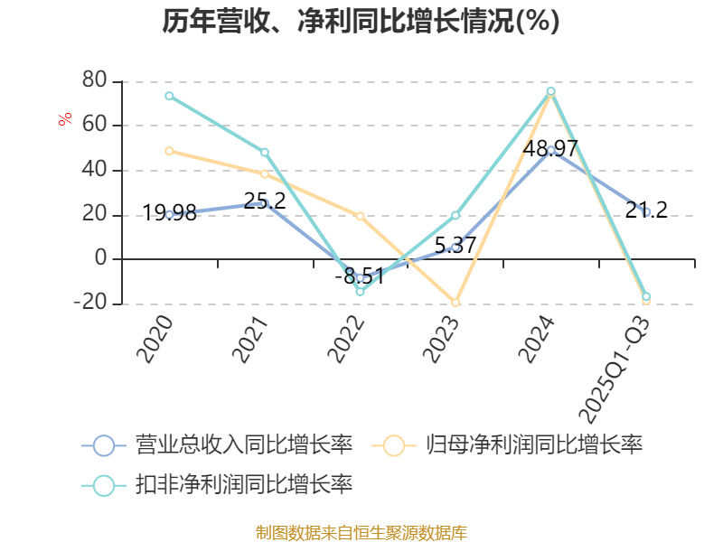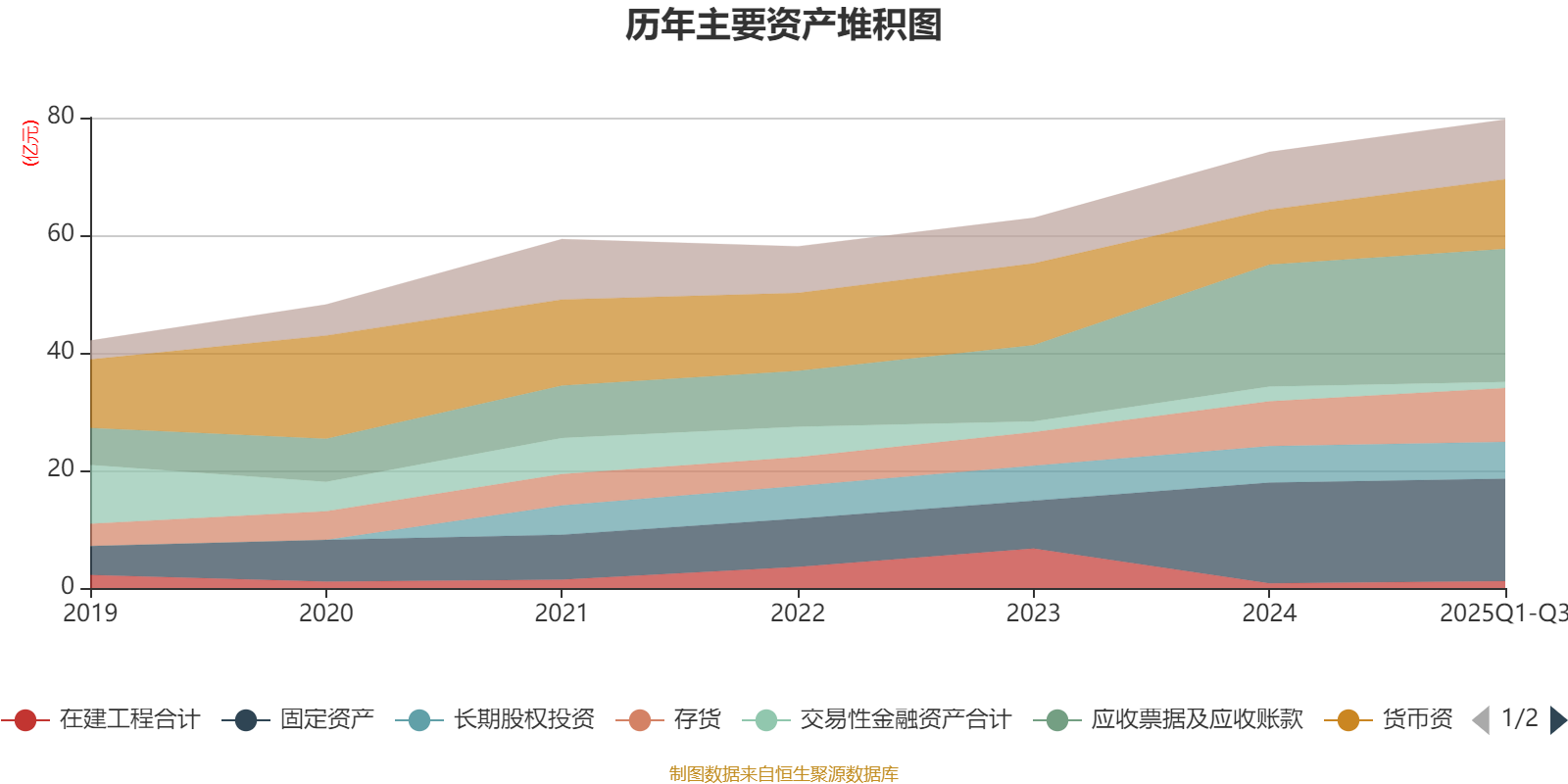 资产重大变化方面,截至2025年三季度末,公司货币资金较上年末增加26.64%,占公司总资产比重上升2.26个百分点;交易性金融资产合计较上年末减少59.85%,占公司总资产比重下降2.12个百分点;固定资产较上年末增加1.66%,占公司总资产比重下降1.25个百分点;存货较上年末增加20.24%,占公司总资产比重上升1.22个百分点。