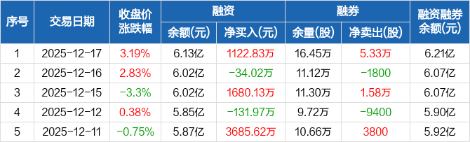 电连技术:融资净买入1122.83万元,融资余额6.13亿元(12-17)